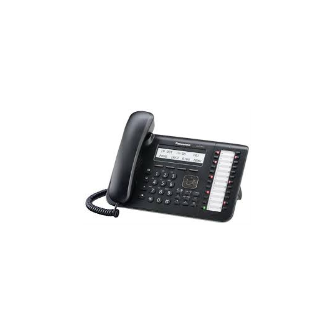 el telefono secretarial KX-DT543 es todo un conjunto de funciones compatibles con plantas telefonicas panasonic, el teléfono digital exclusivo KX-DT546 no podría resultar más sencillo de utilizar. El teléfono integra una pantalla alfanumérica de gran tamaño, teclas programables, un puerto EHS que proporciona conexión para cascos inalámbricos, y tecla para navegación sencilla.
